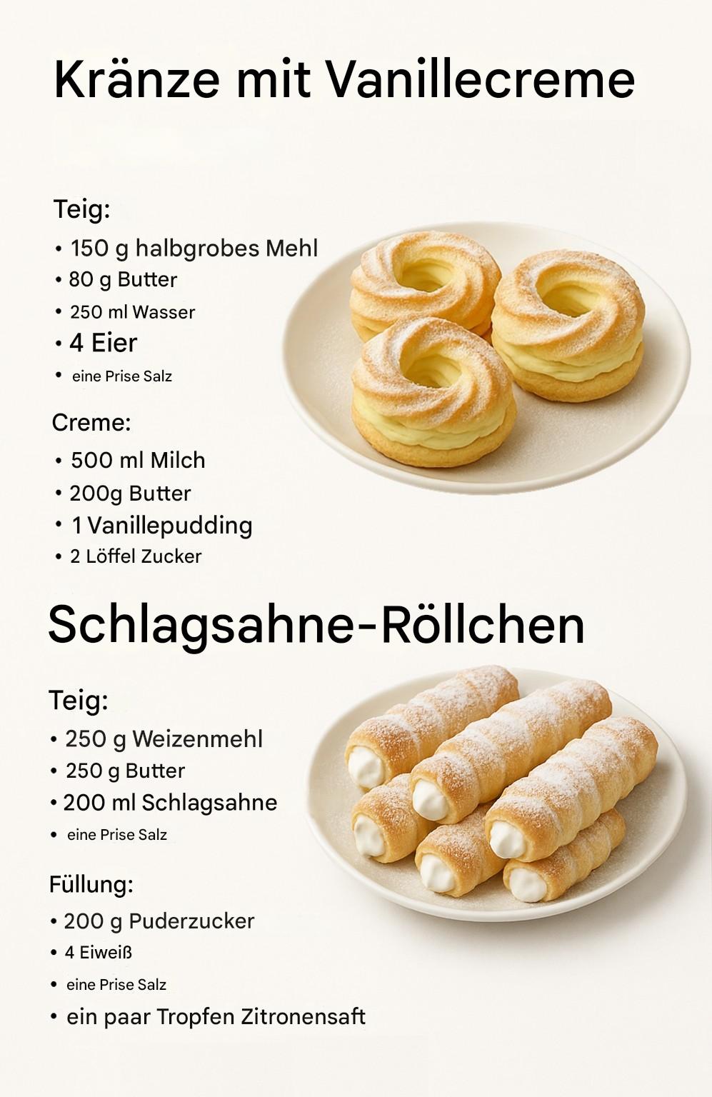Kränze mit Vanillecreme und Schlagsahnerollen